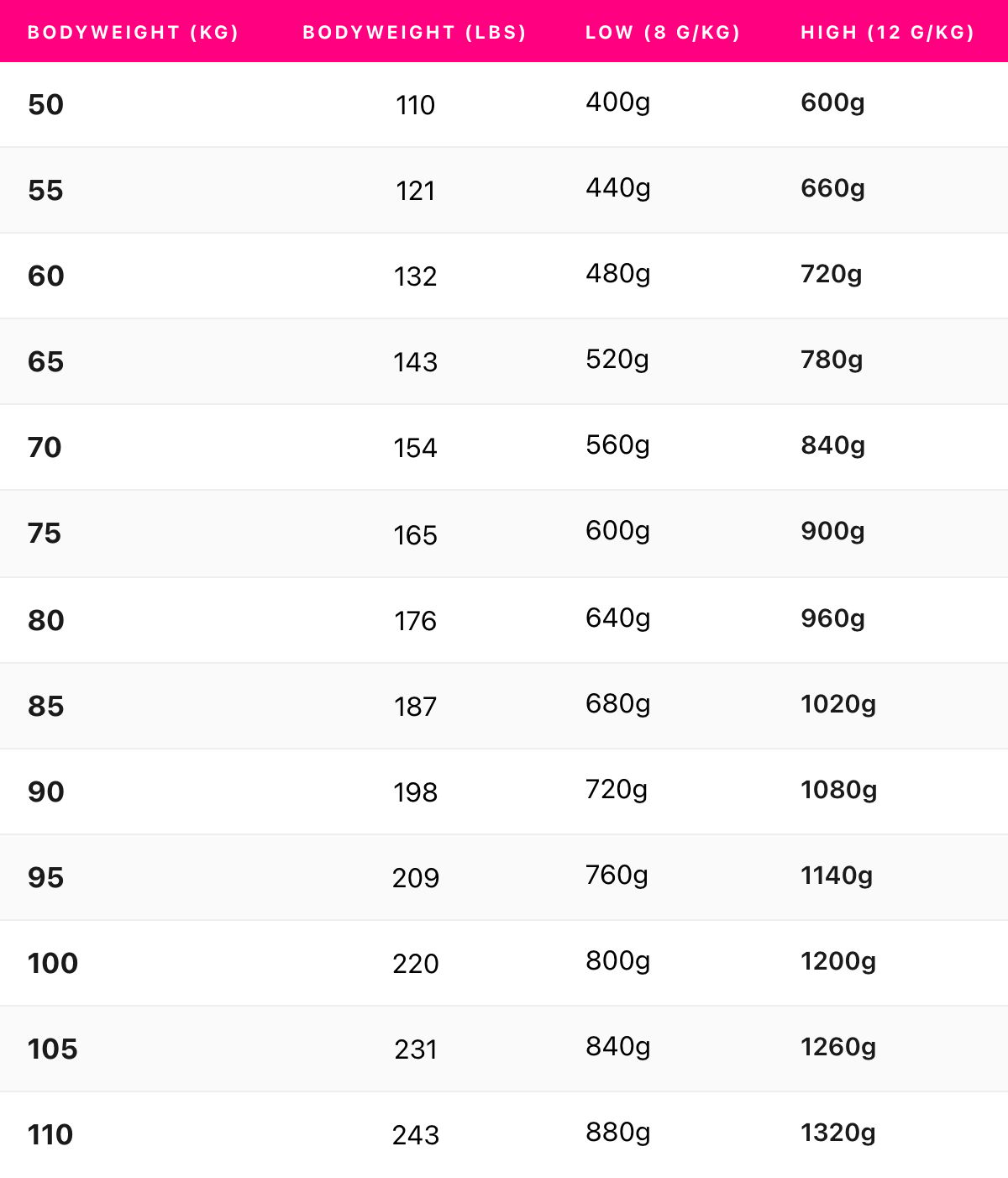 Exactly how many grams of carbs you need (with a chart so you do zero math)
