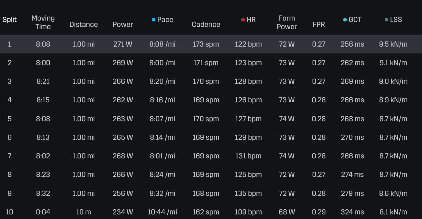 My Form Power and Form Power Ratio (FPR) on an easy run - From the Stryd PowerCenter